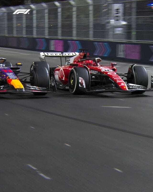 Vegas: Trades the lead with Verstappen and Perez before a brave overtake on the last lap on the latter gets Leclerc second