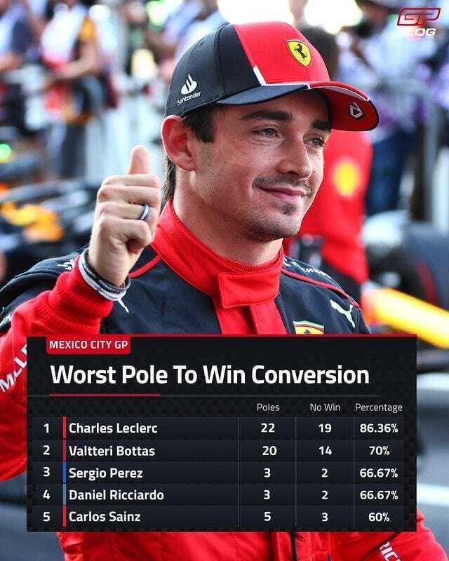 He has shown great single lap pace in 2022 and 2023, taking 14 pole positions across both seasons, and doing so across lots of different types of track - Baku the only track he took pole on in both years. A dozen of those poles have come since Melbourne 2022, and each one of those poles have resulted in someone else taking the chequered flag.